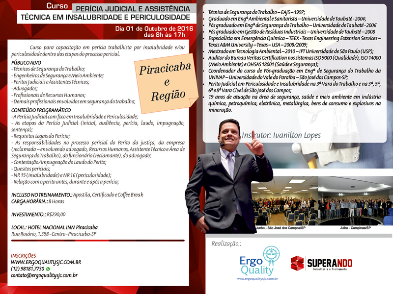 Curso Perícia Judicial Assistência Técnica em Insalubridade e Periculosidade Curso para capacitação em perícia trabalhista por insalubridade e/ou periculosidade dentro das etapas do processo pericial. Fotos do evento Ant Próximo